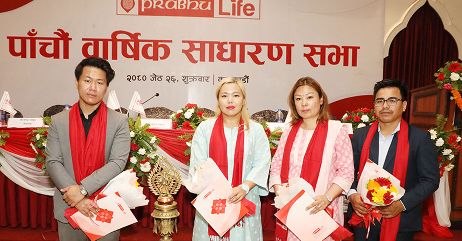 काठमाडौं । प्रभु लाइफ इन्स्योरेन्सको पाँचौँ वार्षिक साधारणसभा शुक्रबार काठमाडौंमा कम्पनीका अध्यक्ष सुभाष अमात्यको अध्यक्षतामा सम्पन्न भएको छ । साधारणसभाले समूह ‘क’ संस्थापक समूहका सेयरधनीतर्फबाट शिक्षा भट्टचन, मिजास भट्टचन, श्यामकृष्ण श्रेष्ठ र सुुसन शेरचनलाई सञ्चालक समिति सदस्यमा निर्विरोध निर्वाचित गरेको छ । शंकर गौतम तथा दिपक पाण्डेय सर्वसाधारण सेयरधनीतर्फबाट चौथो वार्षिक साधारणसभाबाटै सञ्चालकमा रहँदै आउनुभएको छ ।