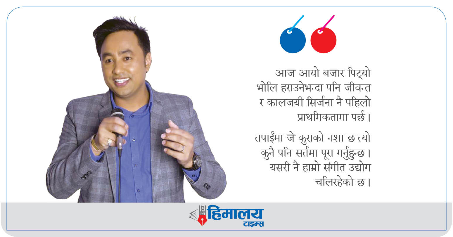 तपाईंमा जे कुराको नशा छ त्यो कुनै पनि सर्तमा पूरा गर्नुहुन्छ । यसरी नै हाम्रो संगीत उद्योग चलिरहेको छ ।
