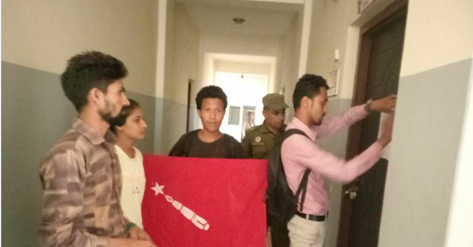 मंगलवार संगठनका केन्द्रीय सदस्य तथा जिल्ला संयोजक सन्देश सापकोटाको नेतृत्वमा पुगेको क्रान्तिकारीको टोलीले शाखा प्रमुख पन्थीलाई बाहिर निस्कन आग्रह गर्दै ढोकामा संगठनका माग र चेतावनी पत्र टास्दै तालाबन्दी गरेको थियो । शैक्षिक सत्रको शुरुवातमा राखेको बिभिन्न जायज मागलाई बेवास्ता गर्दै आएकोले तालाबन्दीमा उत्रिनु परेको संयोजक सापकोटाले जानकारी दिनुभयो ।