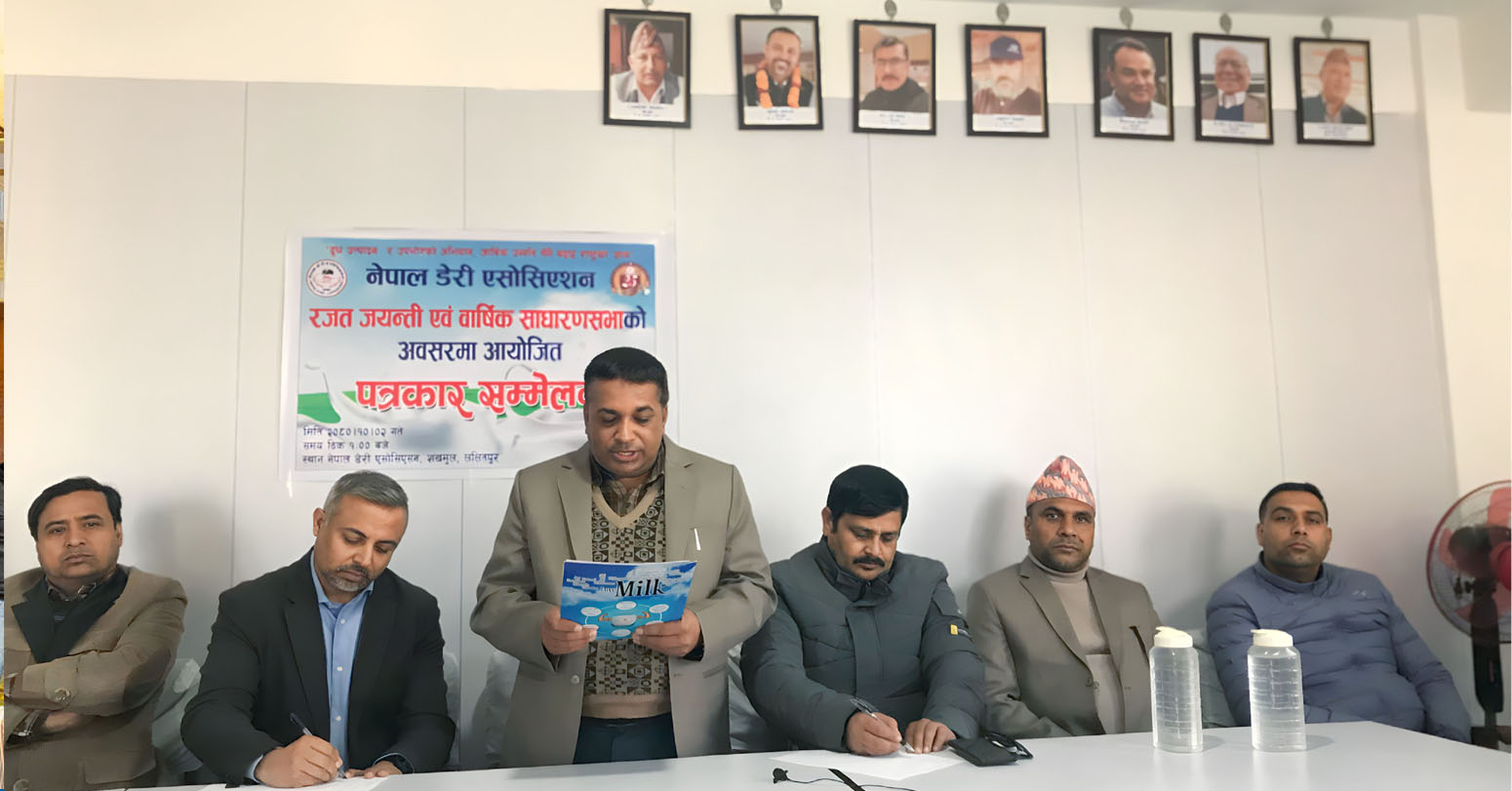 काठमाडौं । नेपाल डेरी एसोसिएसनले माघ ७ गते रजत जयन्ती एवं वार्षिक साधारणसभा मनाउने भएको छ । २०५५ सालमा स्थापना भएको एसोसिएसनले २४औँ स्थापना दिवस मनाउन लागेको हो । एसोसिएसनका अध्यक्ष प्रहृलाद दाहालले एसोसिएसन स्थापना हुनुको मुख्य उद्देश्य दुग्ध प्रशोधन व्यवसायीको सामूहिक व्यावसायिक हक हित सुरक्षा र उन्नतिका लागि भएको भन्दै आगामी दिनमा समेत उद्योगीको सुझावका आधारमा अघि बढ्ने बताउनुभयो ।