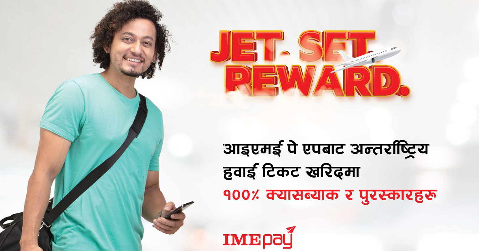 काठमाडौं । नेपालको पहिलो डिजिटल वालेट आइएमई पेले अन्तर्राष्ट्रिय हवाई टिकट खरिद गर्ने ग्राहकलाई लक्षित गरी जेट सेट रिवार्ड नामक अफर ल्याएको छ । अफरअन्तर्गत आइएमई पे एपमार्फत् अन्तर्राष्ट्रिय हवाई टिकट खरिदमा शतप्रतिशत क्यासब्याक साथै अन्य पुरस्कार पनि जित्ने मौका पाउने कम्पनीले जनाएको छ ।