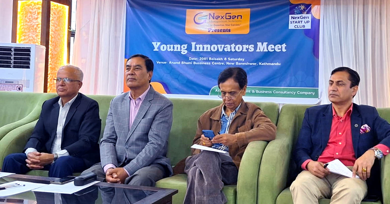 काठमाडौं । नेक्सजेन म्यानेजमेन्ट सोलुसन्सले काठमाडौंमा युवा इनोभेटर्स भेला आयोजना गरेको छ । ग्लोबल आइएमई बैंकका प्रमुख कार्यकारी अधिकृत रत्नराज बज्राचार्यको अध्यक्षतामा भएको कार्यक्रममा नेपाल बैंक र कृषि विकास बैंकका पूर्वप्रमुख कार्यकारी अधिकृत तथा बिमा प्राधिकरणका पूर्वअध्यक्ष देवेन्द्रप्रताप शाह, विजय लघुवित्तका सिइओ तथा लघुवित्त बैंकर्स संघका पूर्वअध्यक्ष वसन्तराज लम्साल, होटल सेभेनस्टारका प्रबन्ध निर्देशक माधव दुवाडी, व्यवसायी सुरेश सापकोटालगायतका विभिन्न क्षेत्रका उद्यमी, व्यवसायी, युवा इनोभेटर्सको सहभागिता थियो ।