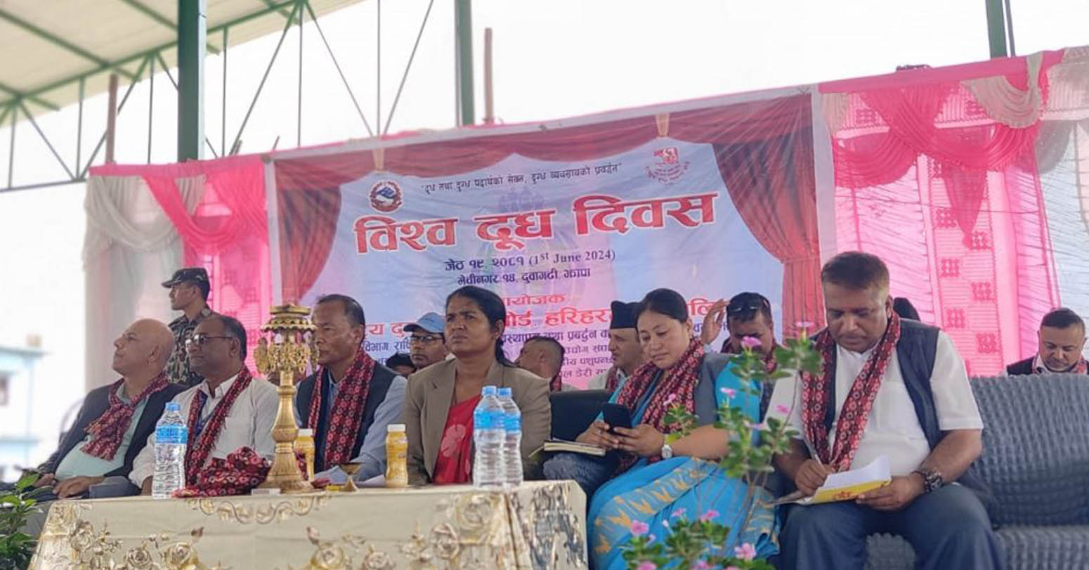 झापा । दूध तथा दुग्ध पदार्थको सेवन, दुग्ध व्यवसायको प्रवर्द्धन नाराका साथ २४औँ अन्तर्राष्ट्रिय विश्व दूध दिवस मनाइएको छ । शनिबार झापाको एनएमसी फार्म परिसर मेची नगरपालिका १४ ढुवागडीमा आयोजित कार्यक्रममा कृषि तथा पशुपन्छी विकासमन्त्री ज्वालाकुमारी शाहले सरकारी स्वामित्वको दुग्ध विकास संस्थान र निजी डेरीले किसानबाट खरिद गरेको दूधको महिनौंदेखि भुक्तानी नदिएको गुनासो आएको भन्दै भुक्तानीका लागि मन्त्रालयले सहजीकरण गर्ने बताउनुभयो । पछिल्लो समय मुलुकमा दूधको उत्पादन बढेका कारण दुग्धजन्य पदार्थ बिक्री नभएर थन्किरहेको उहाँले बताउनुभयो । दुग्ध विकास संस्थानको भण्डारमा एक अर्ब २५ करोडभन्दा बढीको दुग्धजन्य उत्पादन बिक्री नभएर थन्किरहेको मन्त्री साहको भनाइ थियो ।
