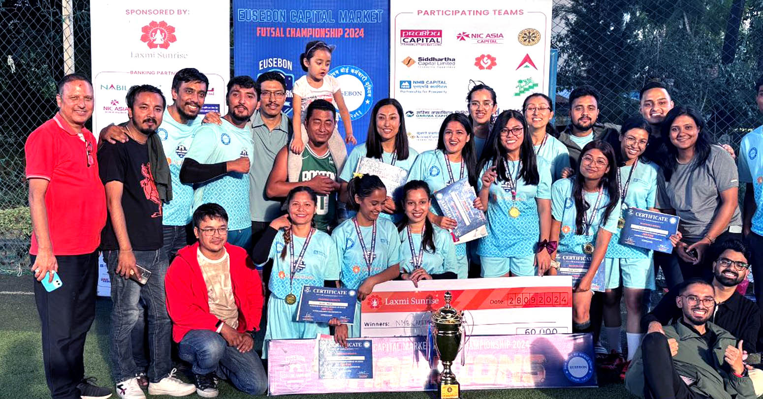 काठमाडौं । नेपाल धितोपत्र बोर्ड कर्मचारी युनियनको आयोजनामा भएको इयुसेबोन क्यापिटल मार्केट फुटसल च्याम्पियनसिपको उपाधि सेयर प्रो सेक्युरिटिज र एनएमबी क्यापिटलले जितेको छ । पुरुषतर्फको फाइनलमा सेयर प्रो सेक्युरिटिजले एसियन सेक्युरिटिजलाई दुई-एक गोलले पराजित गर्दै उपाधि जितेको हो ।
