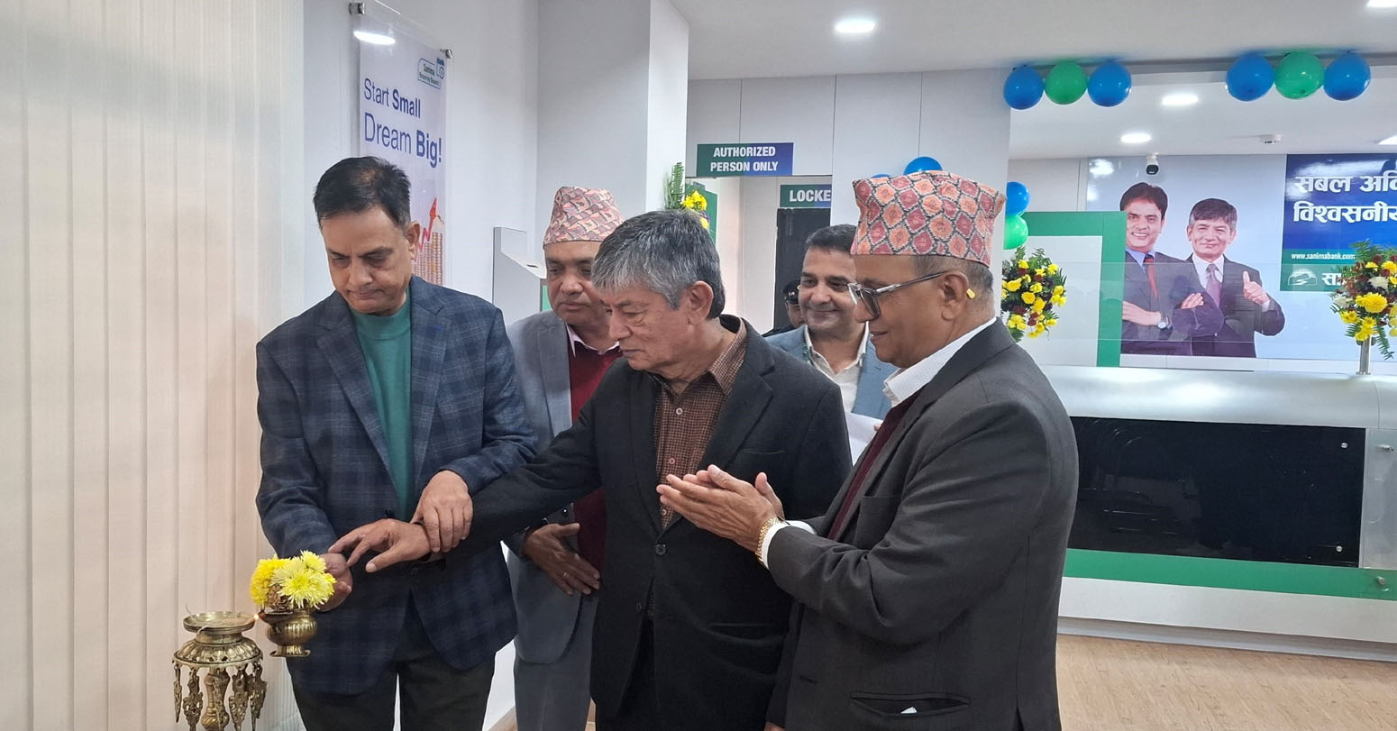 काठमाडौं । सानिमा बैंकले आइतबार काठमाडौंको कागेश्वरी मनोहरा नगरपालिका-५, स्थित थलीमा बैंक शाखा स्थापना गरी बैंकिङ सेवा विस्तार गरेको छ । उक्त शाखा कार्यालय उद्घाटन कागेश्वरी मनोहरा नगरपालिकाका नगरप्रमुख उपेन्द्र कार्की, ब्राण्ड प्रवद्र्धक वरिष्ठ कलाकारद्वय मदनकृष्ण श्रेष्ठ र हरिवंश आचार्य(मह जोडी) तथा बैंकका सञ्चालक लक्ष्मीप्रपन्न निरौला र प्रमुख कार्यकारी अधिकृत निश्चलराज पाण्डेले संयुक्तरूपमा गर्नुभयो ।